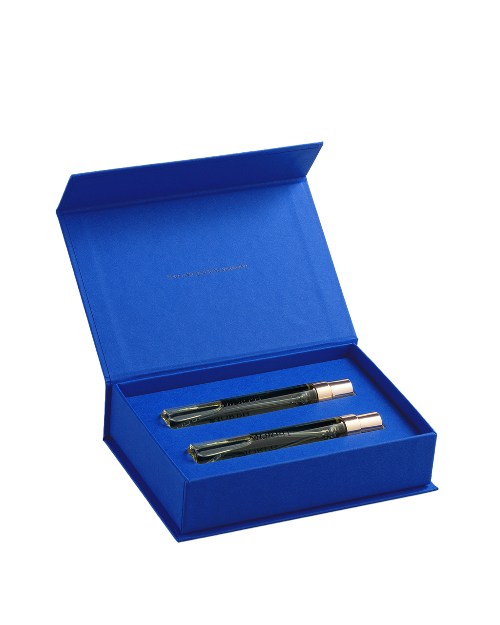 Discover Morph Antigua Bay, a luxurious unisex fragrance combining marine freshness with woody notes and warm hints of gray amber. Now available in mini travel size, two 8 ml bottles, perfect for testing, traveling or elegant gifts.