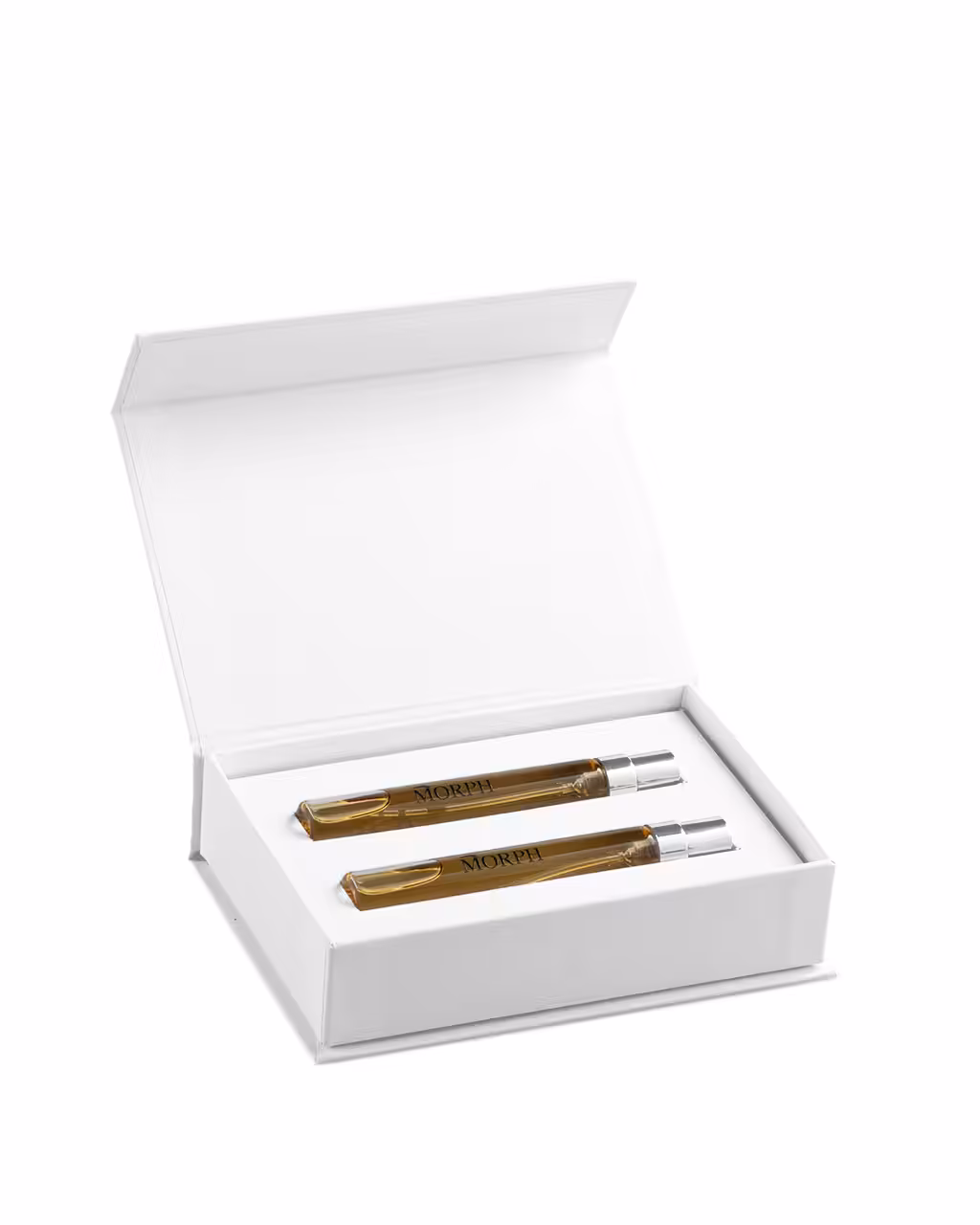 Morph Gate 17 is a modern and sophisticated unisex floral-woody fragrance with marine accents. In mini travel size, the set contains two 8 ml bottles, ideal for testing, traveling or elegant gifts.
