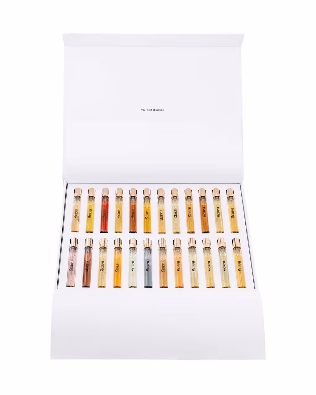 Setul Morph Travel cu 24 de fiole de 8ml adună toate parfumurile casei într-o selecție compactă și elegantă. Ai Luxury, Les Exclusifs și Ice împreună, într-o variantă practică pentru cei care vor varietate sau un cadou deosebit.